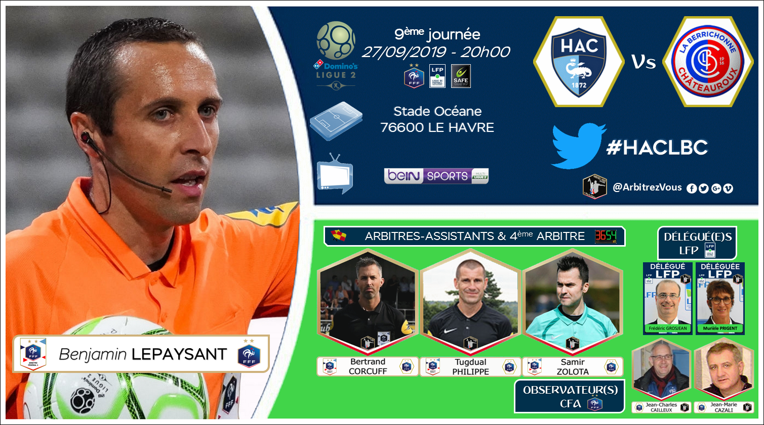 Publié le 26/09/2019 - La DTA a procédé à la désignation des Arbitres et Assistants pour la 9ème journée de Ligue 2 qui aura lieu les 27,28 et 30 septembre 2019.