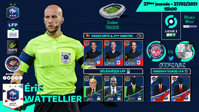 Publié le 25/02/2021 - La DTA a procédé à la désignation des Arbitres et Assistants pour la 27ème journée de LIGUE 2 BKT qui aura lieu le 27 février 2021.
