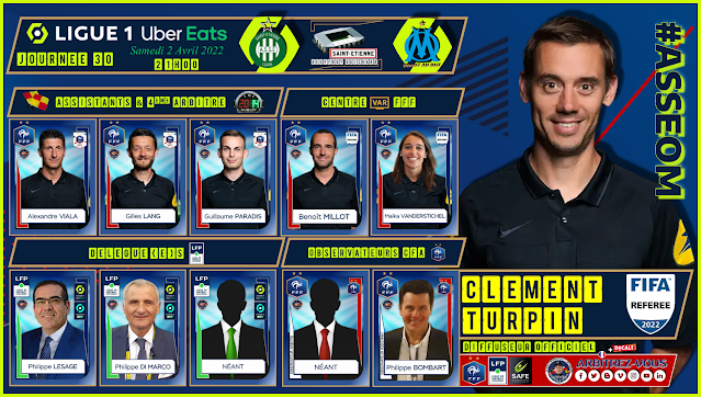Publié le 01/04/2022 - La DTA a procédé à la désignation des Arbitres et Assistants pour la 30ème journée de LIGUE 1 UBER EATS qui aura lieu les 2 et 3 avril 2022.
