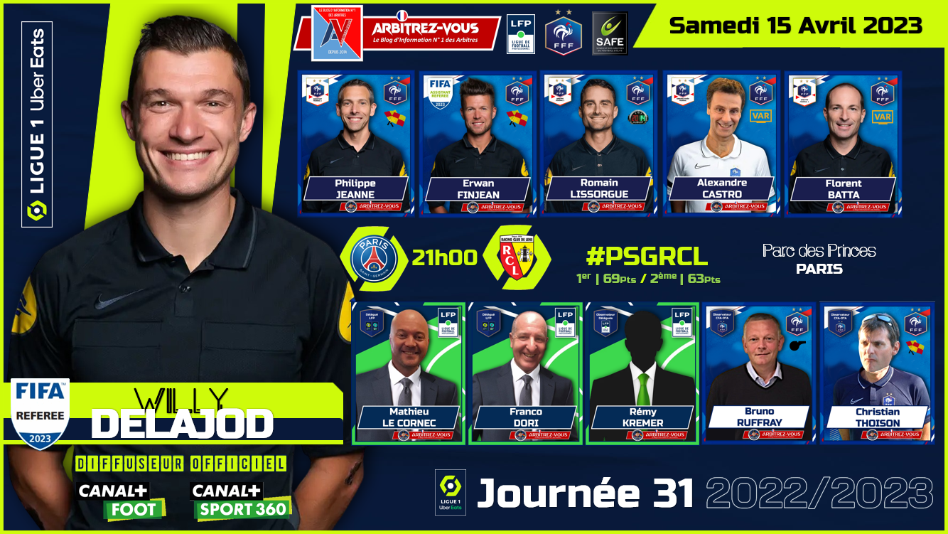 FFF/LFP - LIGUE 1 UBER EATS - DÉSIGNATIONS ARBITRES - REFEREE APPOINTMENTS - Journée 31 - [14-15-16/04/2023] #Ligue1UberEats #FFF #LFP