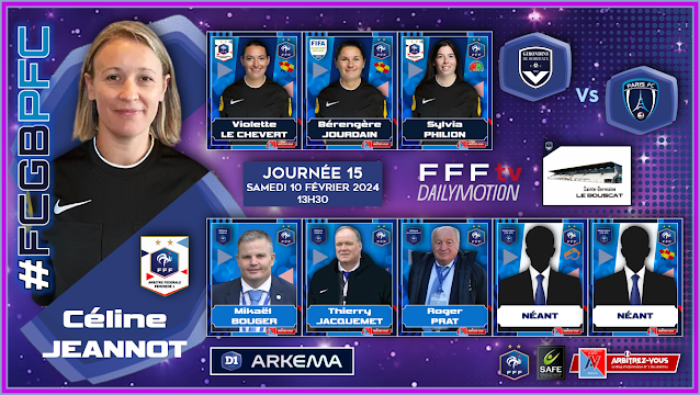 The FFF Refereeing Department will appoint Referees and Assistants for the 15th day of D1 ARKEMA which will take place on february 9, 10 and 11, 2024.