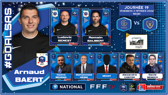 Publié le 02/02/2024 - La Direction de l'Arbitrage de la FFF a procédé à la désignation des Arbitres et Assistants pour la 19ème journée de NATIONAL qui aura lieu le 2 février 2024.