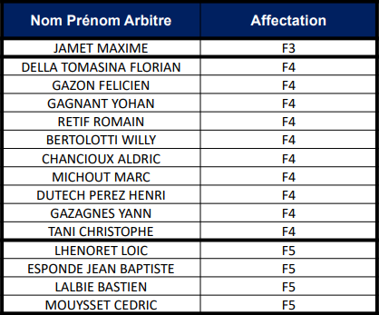 Publié le 27/05/2024 - La Commission fédérale des arbitres (CFA), réunie le 23 mai, a statué sur les évaluations et les classements de la saison 2023-2024 des différentes catégories d'arbitres fédéraux ainsi que sur leurs affectations respectives pour la saison 2024-2025.