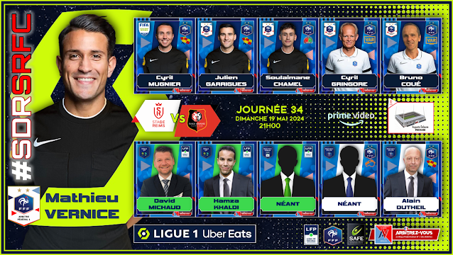 The FFF Refereeing Department has appointed the Referees and Assistants for the 34th and last day of LEAGUE 1 Uber Eats which will take place on May 19, 2024.