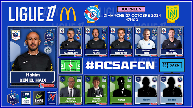 The FFF Refereeing Department has appointed the Referees and Assistants for the 9th day of LEAGUE 1 McDonald's which will take place on october 25, 26 and 27, 2024.
