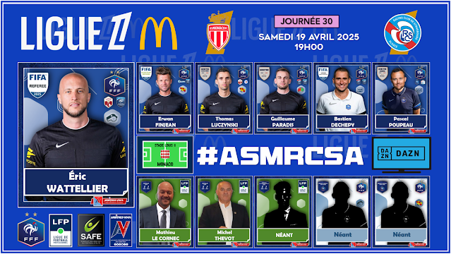 The FFF Refereeing Department has appointed the Referees and Assistants for the 30th day of LEAGUE 1 McDonald's which will take place on April 18, 19 and 20, 2025.